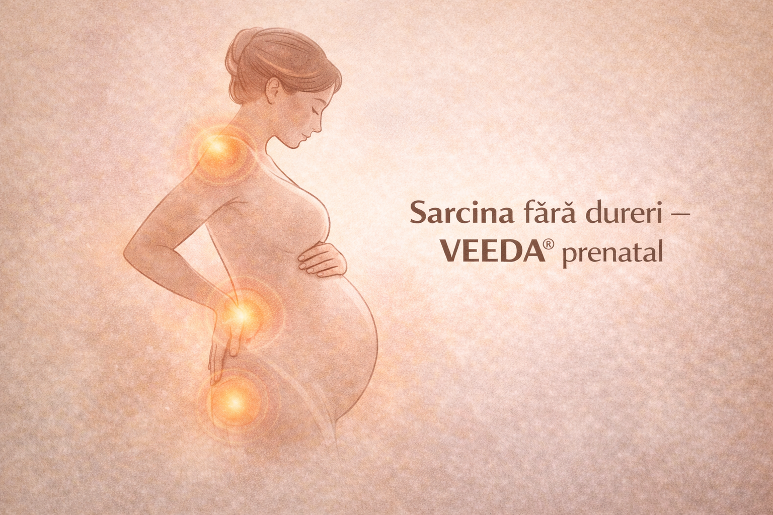 După două săptămâni de ședințe VEEDA® prenatal, durerea de ligament rotund dispăruse complet. Recomandarea ei, pe care am primit-o în scris: "Vă jur că au trecut 2 săptămâni și nu mai știu ce e aia durerea de ligament rotund. Vă recomand din tot sufletul."